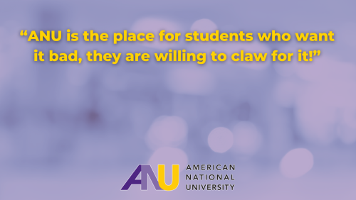 Kary has learned something from every instructor she has had at ANU. One that stands out the most to her is Dr. Steven Stoddard. In his classes, he “broke down a level of APA-citation that I think he needs to do a master’s class!” She laughs. “He broke it down to such a basic understanding that it wasn’t something I [originally] struggled with, but I still learned so much,” she says, “It was powerful enough that when I post week one now, all my teachers are like ‘your APA-citation is on point!'” Kary said working with Dr. Stoddard taught her a lot and he reinforced all of what she is passionate about in her career and in her life. The support isn’t in just one professor, “all of my instructors are so supportive, very positive, and helpful. They’re very much just like ‘just text or call me!’” Her education doesn’t just come from professors and instructors, but her classmates as well. She’s been able to get close to a few of her peers and learn from their perspectives as they collaborate together.