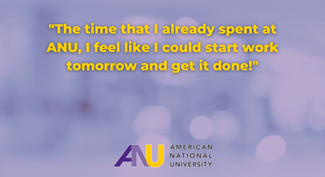 Does Asia recommend ANU to other students looking to earn their degree? “Absolutely, 100%. I wouldn’t say anything else besides how great [ANU] is. It’s all from home and there is nothing more that I would ask for from ANU!”
